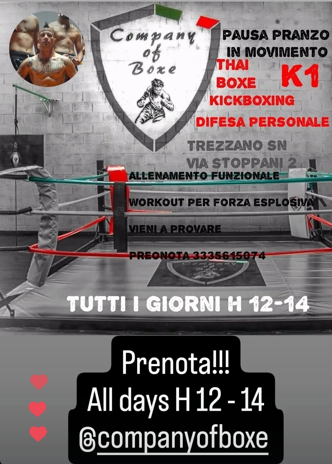 Il maestro Andrea vi seguirà nel corso dell’allenamento, vi preparerà atleticamente e vi insegnerà le tecniche di K1, Thai e Kick Boxe.